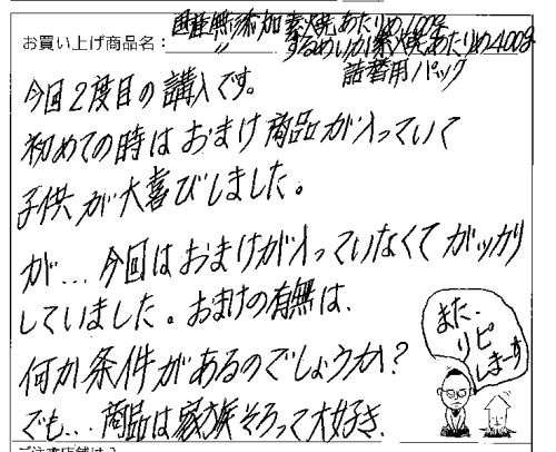 国産無添加素焼きあたりめへのご感想を頂きました。