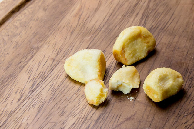 これにより、低温でじっくり揚げていくことで水分を蒸発させて焦げ付かず色、形、栄養素などを損なわずサクサクした食感に仕上がりました。
